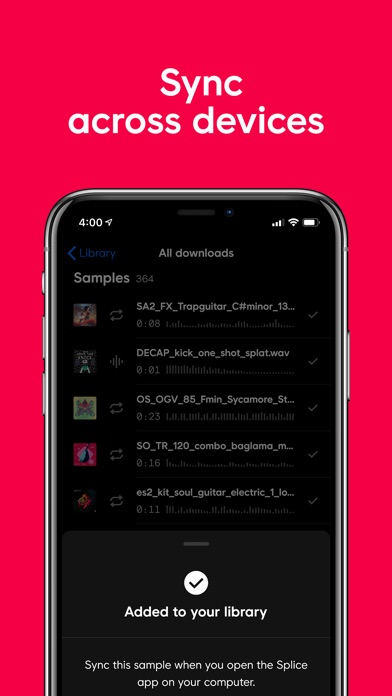 With Splice, musicians and sound designers can browse, audition, and create with millions of sounds across all genres from anywhere, anytime. Sounds sync across devices for a seamless workflow.