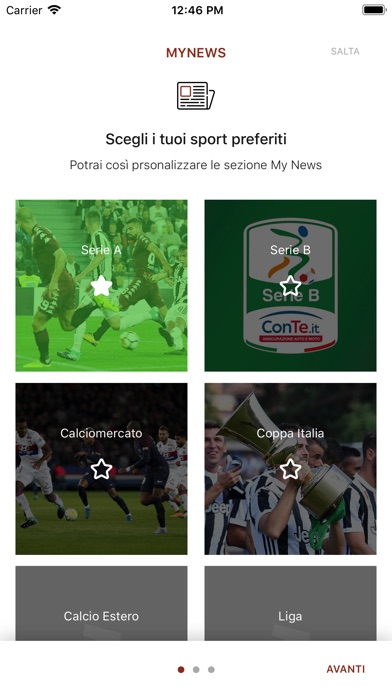 E' possibile configurare le news preferite e iscriversi alle Notifiche della propria squadra e degli sport preferisti