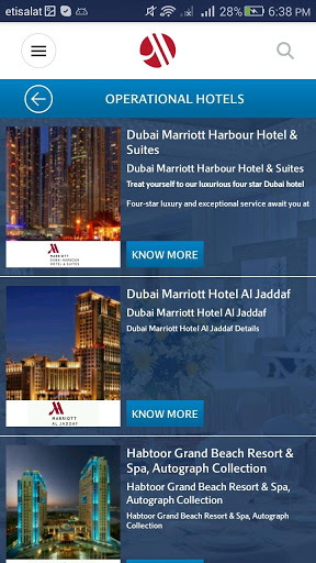 This Marriott App includes details of all the Marriott Middle East and Africa Properties which are categorized by; Country, City, hotel features and points of interest. The App will assist you, our valued customers, to obtain a simple holistic view of the MEA Region, whilst locating specific Marriott International properties and points of interest at your fingertips. We hope this will make planning your next business or leisure trip, group, conference or event easier than ever, thank you for visiting our app, we can’t wait to welcome you to one of our fantastic Hotels!