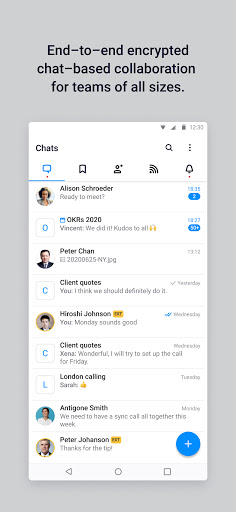 Specially designed for the BlackBerry Dynamics mobile application platform from Blackberry, Symphony provides secure messaging for businesses, teams and workgroups. Combined with BlackBerry, Symphony offers advanced enterprise security and management features, such as log recording, control for onward file sharing, session management and more.
