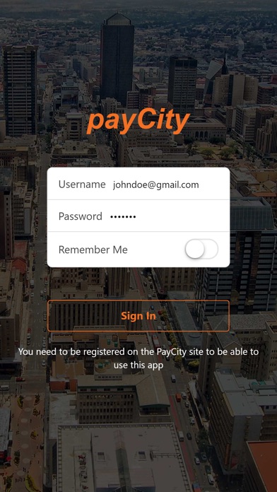 - App Support: http://www.payCity.co.za