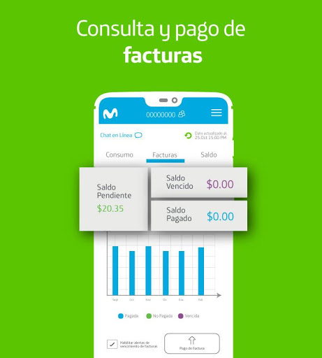 Pagar tus facturas:No hagas largas filas y paga tus facturas desde la app. ¡Mi Movistar es la app para pagar tu facturación telefónica y mucho más!