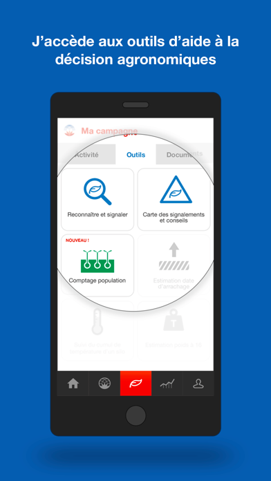 - Accéder aux tableaux de bord, aux conseils agricoles et aux outils d’aide à la décision agronomiques