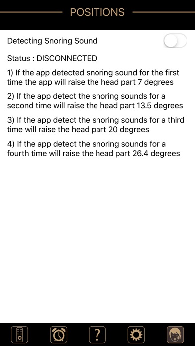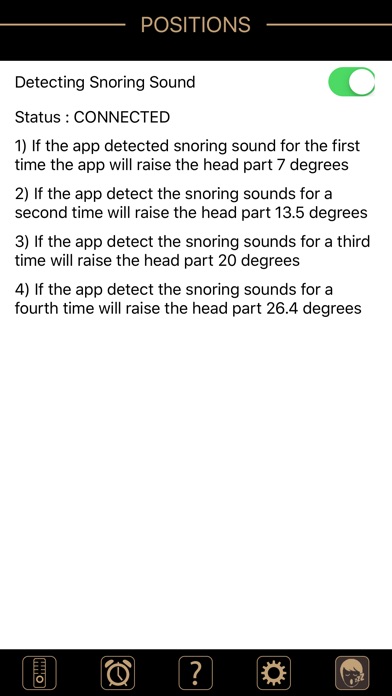 Comfort Group Snore it's an app that controls the bed motors via raising and lowering the head and foot part of the bed, also trigger vibrator motors to add comfort to the sleepers.