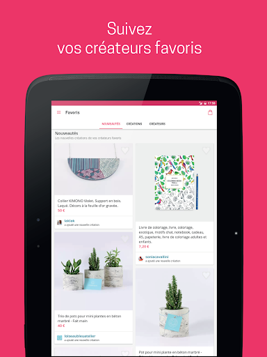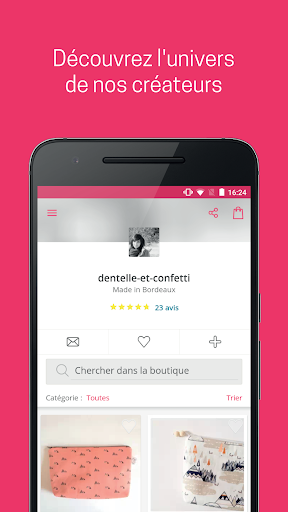 *** Vous souhaitez découvrir nos créateurs ?*** L'application vous permet de vous inspirer grâce aux sélections mises en avant, de dénicher et de mettre de côté vos trouvailles favorites, d'échanger avec nos créateurs, et bien sûr, d'acheter en toute sécurité votre création si vous avez trouvé la perle !