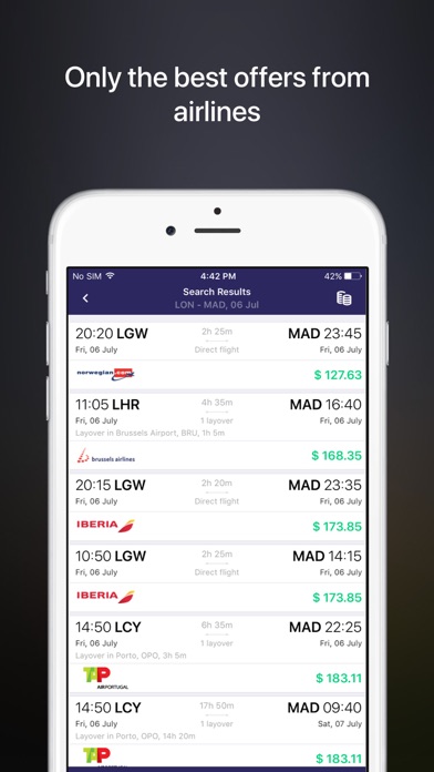 It is extremely easy to use the app. In order to search for the airline tickets it is enough to indicate date, number of passengers and the required class of service — Economy or Business. Application will do the rest! You will only have to choose and book the airline tickets. Upon payment and ticket issue the itinerary receipt with the number of e-ticket will be sent to your e-mail.