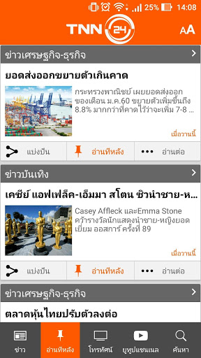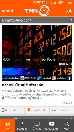 TNN24 has strong reputation for fast, accurate and no-bias news report that is a basic mandatory need for news consumption today. Now you can access the latest up-to-the-minute news on your mobile phone with our TNN Application. With an active 3G, EDGE, GPRS or Wi-Fi connection, you can watch clips containing political, economic and business news, international news, sport and entertainment news; all in Thai language and with a fully Thai perspective. In addition to video clips, you can also view a completely LIVE stream of the TNN 24 news feed, direct from our studios.