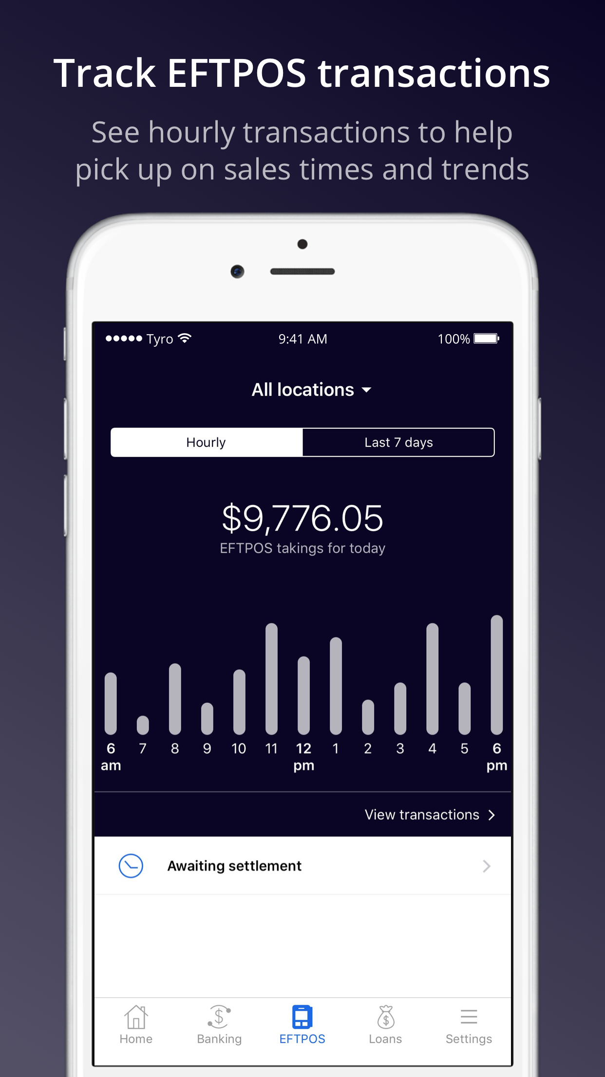• Track daily unsettled EFTPOS takings in real time, and see when you're busy and when you're not