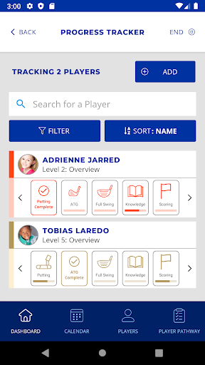 The U.S. Kids Golf Player Pathway App makes it simple for coaches to organize players, track their progress and display results as they advance through all ten levels. The App eliminates extra work and gives you more time to coach…. no need for clipboards, spreadsheets, repetitive record keeping or hand-written scoreboards.
