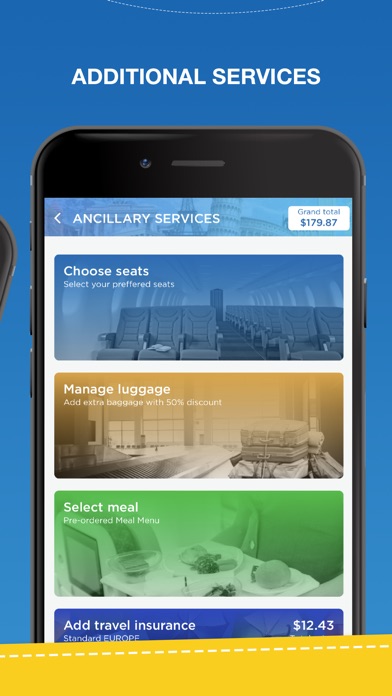 Book flights conveniently to attractive destinations worldwide at the best prices. Order extra services in addition to your booking, make payments using secure methods; check in swiftly, and have constant access to your booking and mobile boarding passes all in just one application.
