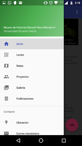 Aplicación Móvil del Museo de Historia Natural Vera Alleman H. de la Universidad Ricardo Palma desarrollada por Ivan Manuel Aliaga Huamán y Abel José Tarazona Reyes. Esta aplicación cuenta con un módulo de Realidad Aumentada para mejorar la experiencia en el área de paleontología del Museo, además cuenta con un lector de códigos QR para que los interesados conozcan más sobre las muestras exhibidas en las vitrinas de las distintas áreas del Museo tales como: Botánica, Zoología, etc.