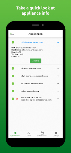 Untangle Go gives IT administrators visibility of the Untangle appliances and subscriptions they manage with Untangle Command Center. Untangle Go allows you to view information about your Untangle appliances and subscriptions including status, alerts and system resources from your mobile device. Untangle Go compliments Untangle Command Center, but is not a replacement. We welcome your feedback.