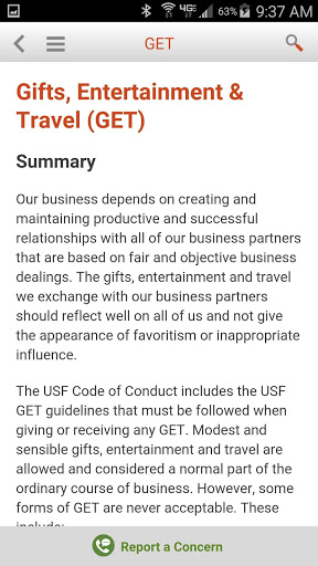 The ‘In Good Company’ mobile app is intended to provide US Foods employees and their business partners a convenient tool to access US Foods Compliance policies and other related information. It is intended as an additional resource for employees to help guide and assist them with ethical decision making. As such, US Foods does not require employees to use the app. In addition, the app does not collect any information from anyone who accesses and uses it. If you have any questions or concerns, please talk with your supervisor before downloading or registering for this app.