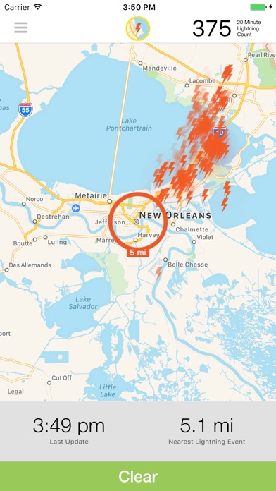The Lightning Vision app provides real-time lightning information based on your mobile device location. A warning notification will be triggered if lightning is detected within 5 miles of your device.