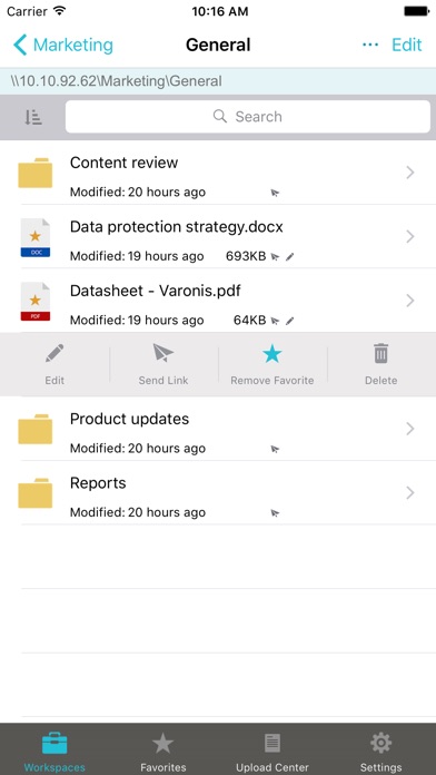 Once DatAnywhere is installed and configured on a corporate server, you can use this app to login with your Active Directory credentials and browse, synchronize, and share corporate data.
