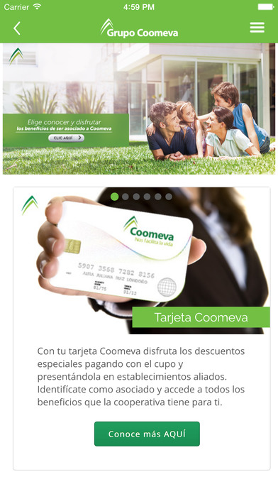 Descarga GRATIS la aplicación del GRUPO COOMEVA, y lleva la mayor cooperativa de profesionales de Colombia en tu Smartphone, Desde donde estés accederás a las siguientes funcionalidades: