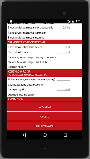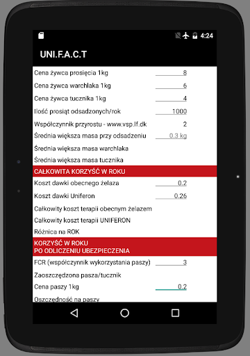 Aplikacja podpowiada wartości niezbędne do uzupełnienia, a oszczędności wyliczają się same podając ostatecznie podsumowanie zysku jakie może potencjalnie uzyskać hodowca. Dodatkowo zastosowanie aplikacji nie wymaga dostępu do internetu.