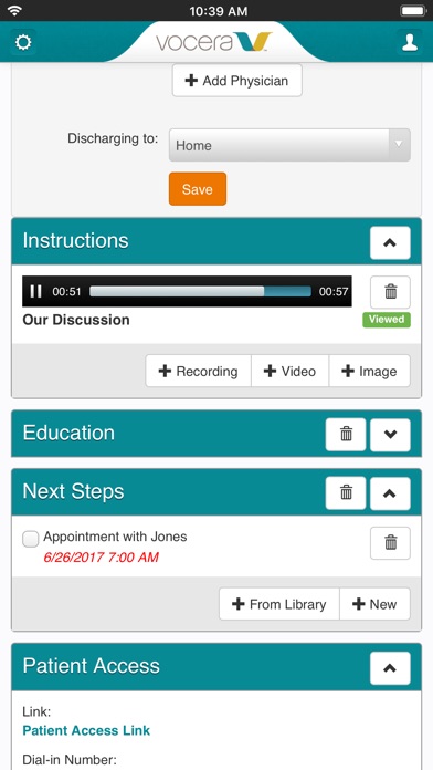 Vocera CE is used by care providers to improve patient understanding and compliance of discharge instructions, pre-admission orders, and other care directives, while increasing patient satisfaction and decreasing readmission rates.