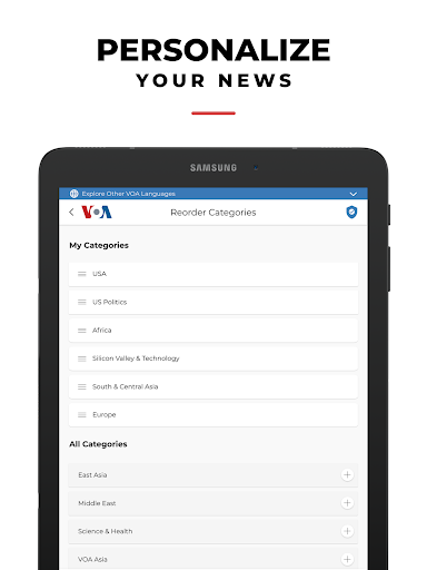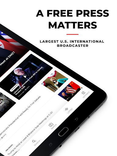 The free, *official* Voice of America (VOA) mobile / tablet application serves news to your mobile device or tablet. VOA operates one of the world's largest international news media networks on TV, radio and digital properties with a total weekly audience of more than 200 million people around the world, including Africa, The Middle East, Asia and beyond. To do this, VOA employs more than 3,500 journalists, focused on countries without a free or established press or free and open internet access.