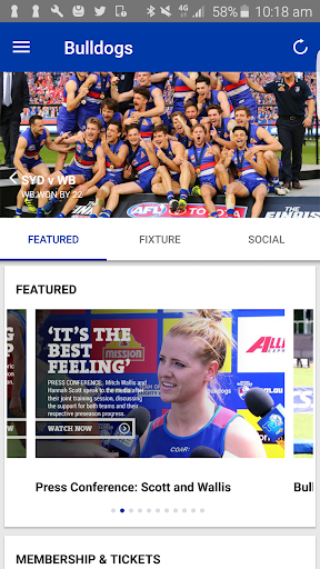 - My Club section with access to exclusive features for club members and My Bulldogs Account holders