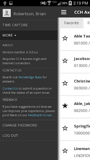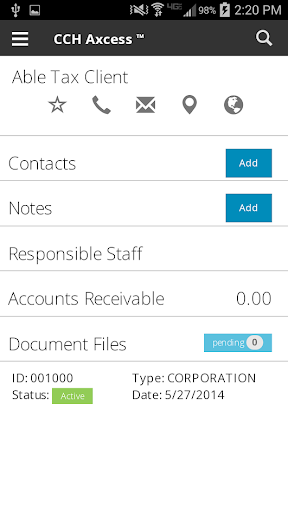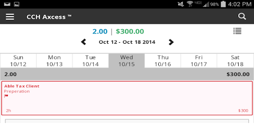 Connect, collaborate and grow with CCH Axcess. The CCH Axcess™ app provides CCH Axcess customers with the ability to manage their work on the go. At its core is the firm’s common client database, which lets you access essential client information from anywhere. You can also enter time, view firm documents, easily publish documents to clients’ portals, view a client’s balance, payments, and invoices, and even identify the status of your engagements - all through your mobile devices. With real-time, shared access to client information, you’ll be able to advance your business and deliver more value to clients who have come to expect on-demand service.
