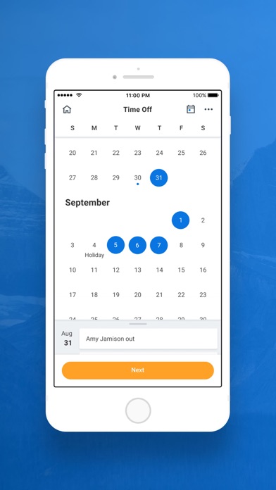 • Review your pay, view or request time off, check in and out for work, submit your timesheet, and submit expenses quickly.