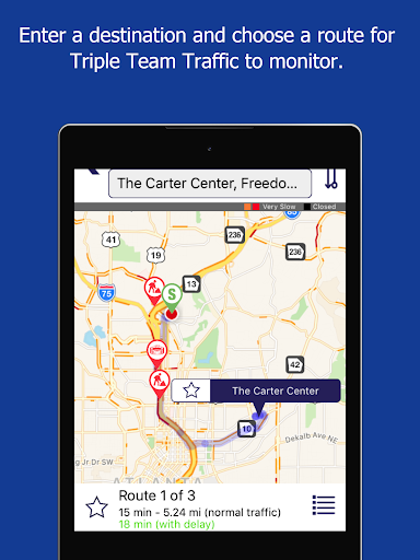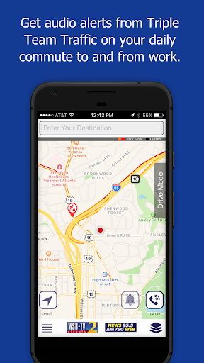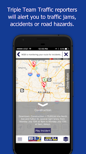 * Review the Map before you depart and easily see Incidents, Delays and Wrecks on your route, with text descriptions, and the WSB Traffic Reporters' audio reports. Or schedule notifications to alert you at your chosen time if there are any incidents on your route. Know Before You Go!