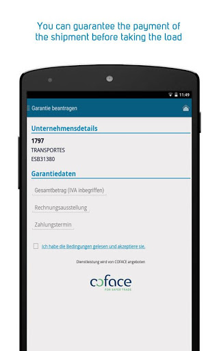 Wtransnet is the only freight exchange with a payment guarantee. The app allows to quickly and easily guarantee the payment of your trips immediately before loading the truck.