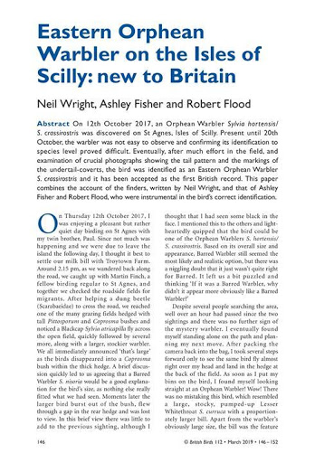 “British Birds is a journal for all occasions. It’s the key depository for our birding past; it keeps birders abreast of what’s happening right now; and it will surely help us all to chart the future of ornithology.”
